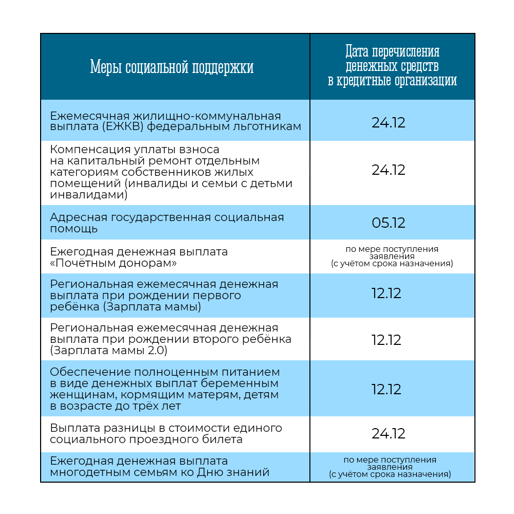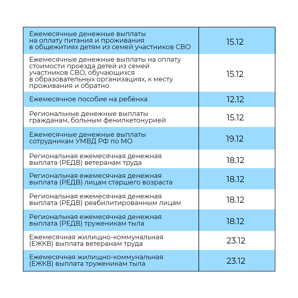 График выплат на декабрь 2025