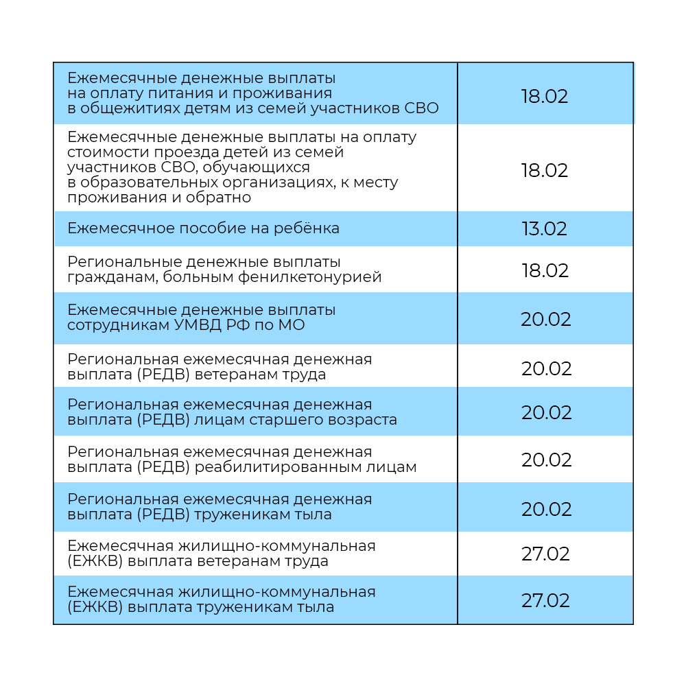 ГРАФИК ОСУЩЕСТВЛЕНИЯ ВЫПЛАТ НА ФЕВРАЛЬ 2026 ГОДА | ||||