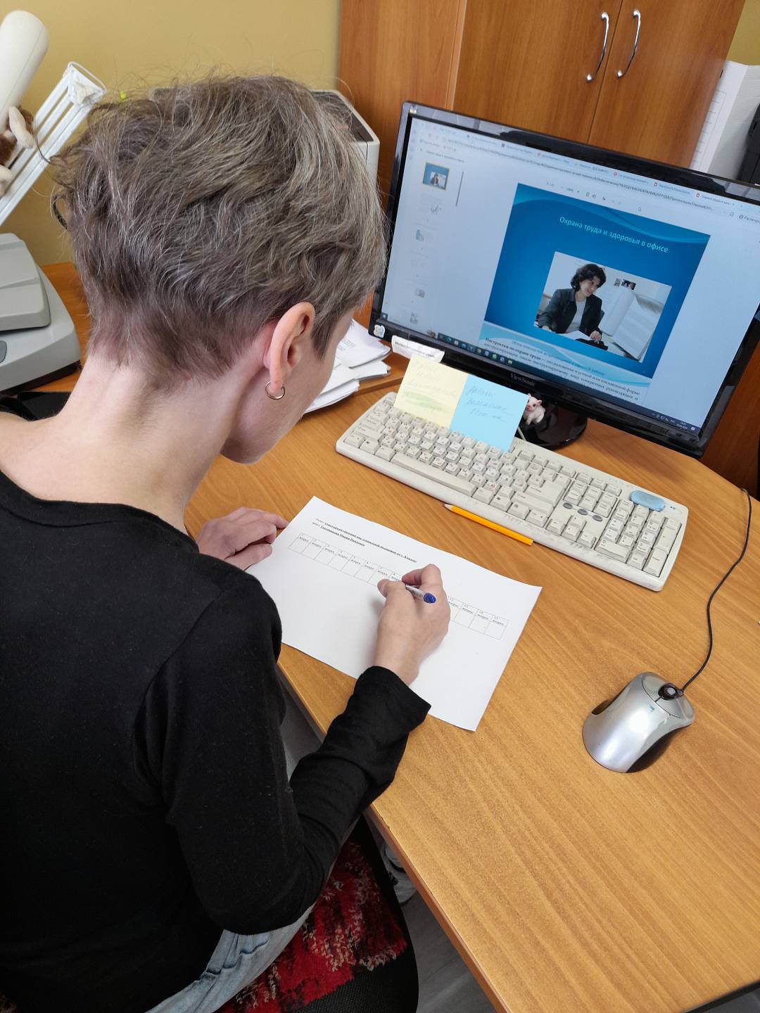 – Ознакомление с презентацией «Охрана труда в офисе и по дороге на работу. Охрана труда в офисе - электричество». В наглядной форме были продемонстрированы скрытые опасности привычного офиса (зарядные устройства на батареях, запутанные провода, чайники рядом с бумагами) и риски для пешеходов (наушники и телефоны при переходе дороги). Материалы презентации подчеркивают: здоровье начинается с мелочей.