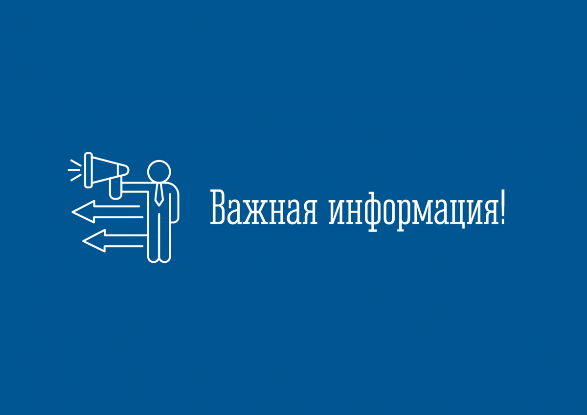 На синем фоне белым цветом изображён стилизованный рисунок человека в костюме и галстуке, держащего в руке рупор. Слева от человека нарисованы три стрелки, направленные влево. Справа от рисунка белым цветом написано: «Важная информация!»